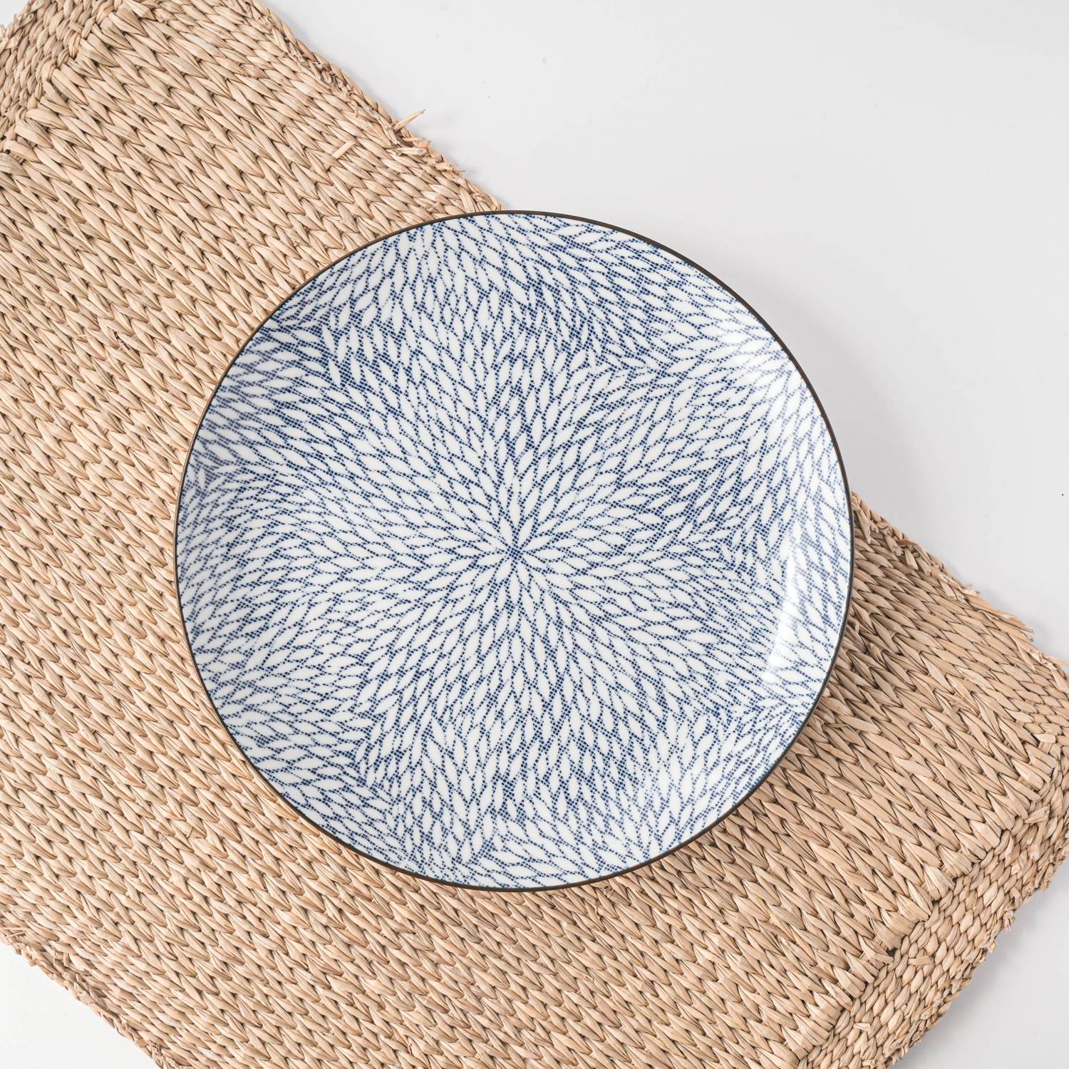 日本の伝統模様にモダンなエッセンスを加えた、7.0寸のインディゴストライププレート。