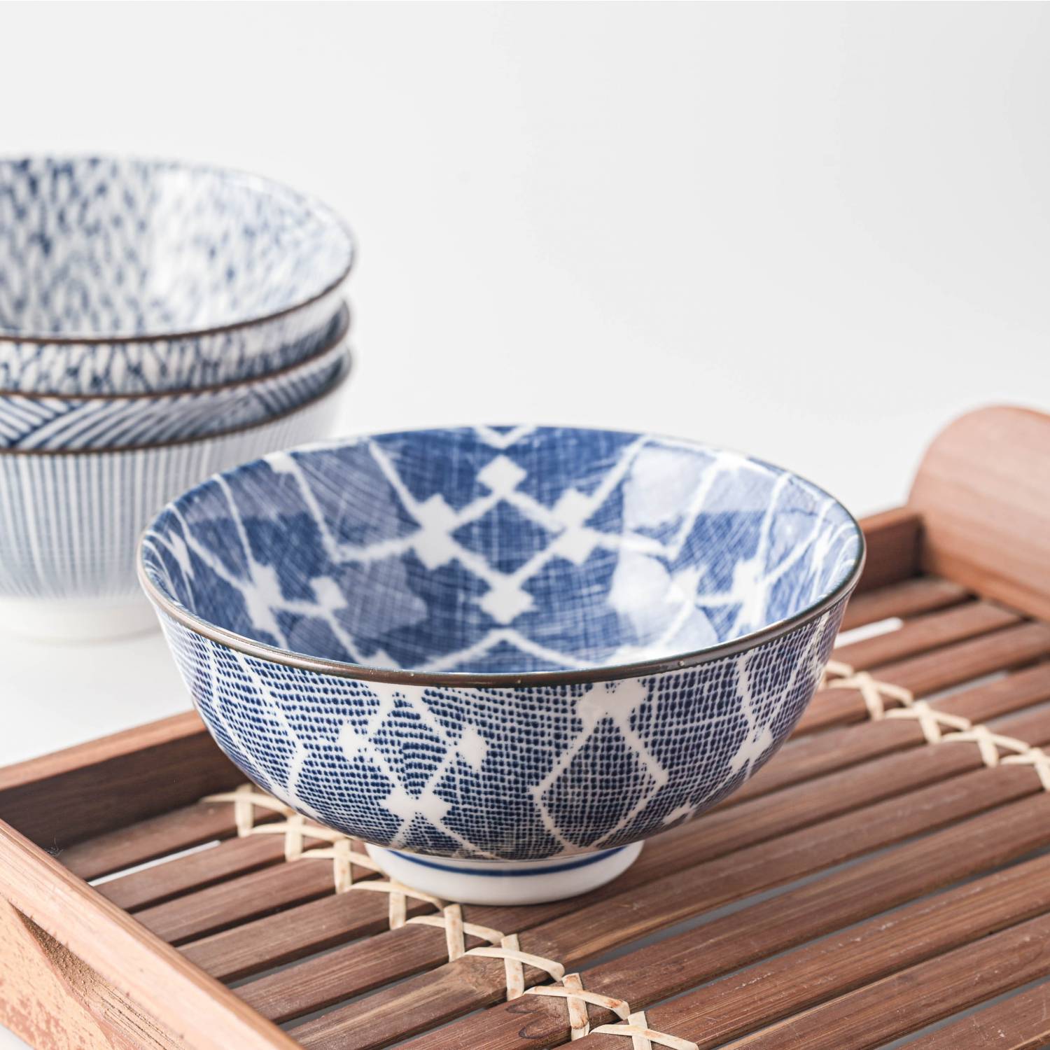 深い藍色のストライプ柄が印象的で、前菜やお寿司、デザート、普段の食事にもぴったりです。